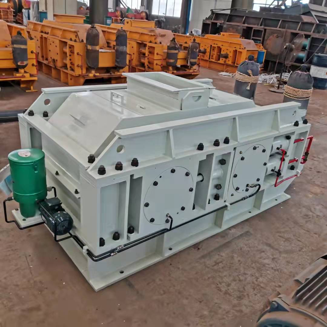 該機工作原理與輥壓機相近,采用了料層擠壓破碎的理念,其主體是由一對相互平行、水平安裝的圓柱形輥子組成,分別由兩套彼此獨立的動力裝置驅(qū)動。當(dāng)這對輥子做相向運轉(zhuǎn)時,進入喂料口的物料受到輥子的擠壓、沖擊、磨削而細碎,并隨自身重力被旋轉(zhuǎn)的輥子甩出,向下卸落。